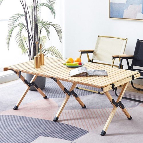 야외 캠핑 롤테이블 L 접이식 다용도 원목 좌식선반